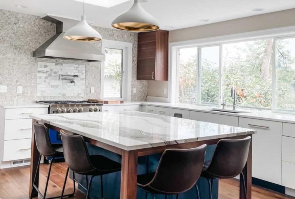Sunala was the GC on this job and self-performed all carpentry, tile work, and painting. The clients wanted a bright, river-esque theme as they overlook one of Oregon’s many rivers.